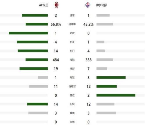 易边再战,佛罗伦萨率先打破僵局,第55分钟法乔利的传中,造成红黑军团门前一片混乱,迈尼昂扑救失误,给了戈森斯轻松补射的机会,帮助此前非常被动的佛罗伦萨,在圣西罗球场取得了1-0的领先。