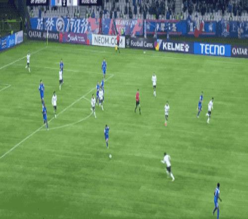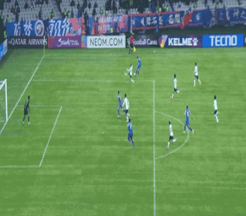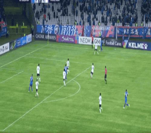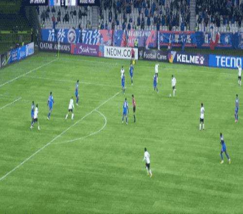 第14分钟,吴曦送出精准长传,米内罗的跑位带走防守球员,阿苏埃的远射击中横梁。
