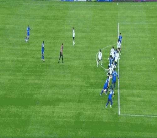 第39分钟,神户胜利船开出战术角球,队长山川哲史背对球门,将球顶进。