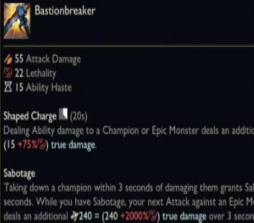 S16刺客装备【破垒者】效果:参与击杀后可对野怪防御塔造成一次高额真伤