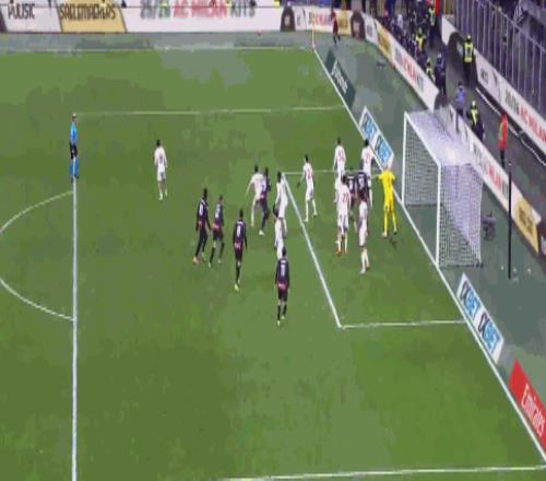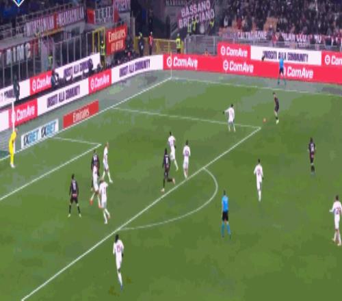 第90+2分钟,扳平比分,莱奥头槌完成绝平,米兰1-1