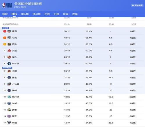 西部最新排名: